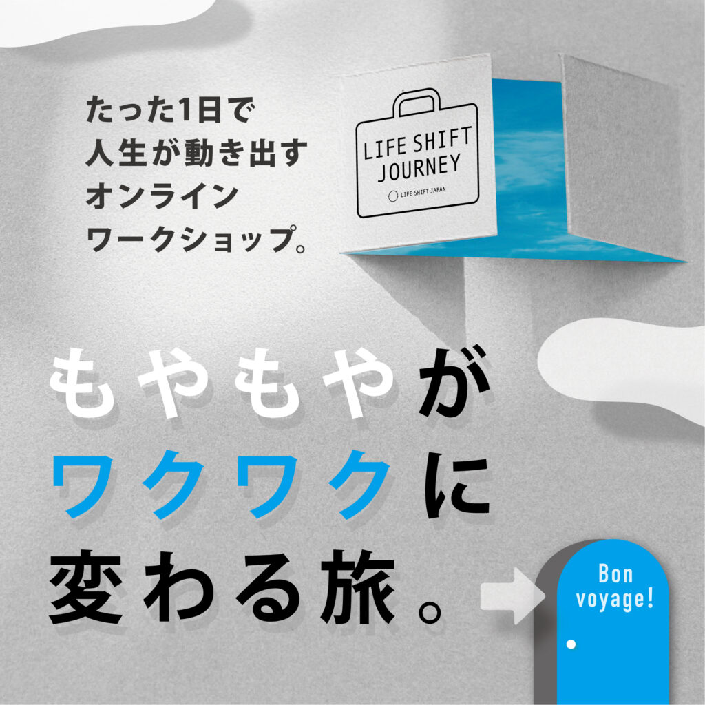 *ライフシフト・ジャパンは、数多くのライフシフターのインタビューを通じて紡ぎだした「ライフシフトの法則」をフレームワークとして、一人ひとりが「100年ライフ」をポジティブに捉え、自分らしさを生かし、ワクワク楽しく生きていくためのワークショップ「LIFE SHIFT JOURNEY」(ライフシフト・ジャーニー)を個人の方及び企業研修として提供しています。詳細はこちらをご覧ください。